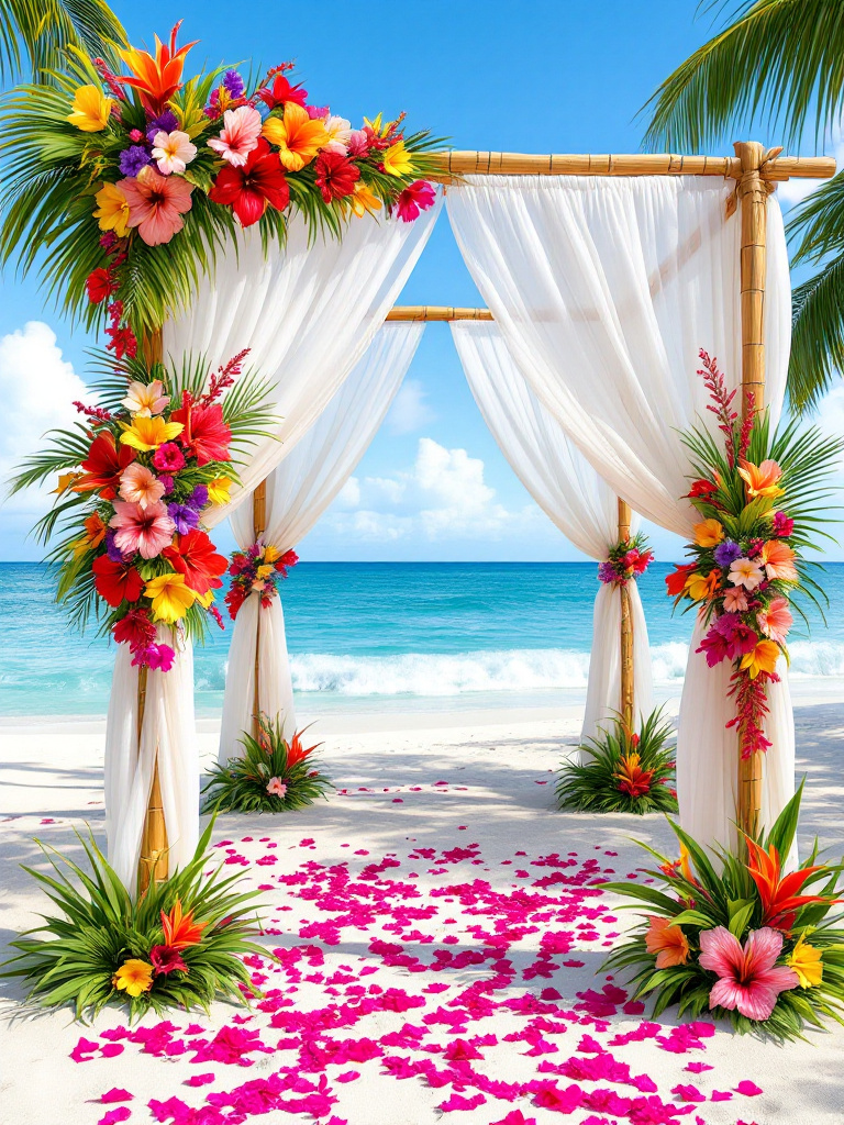 Color palettes greatly influence the overall look of the floral arrangements. Couples often opt for harmonious colors that resonate with their chosen theme. For classic weddings, whites and soft pastels might dominate, whereas bohemian styles tend to incorporate vibrant and unexpected color combinations. Tropical designs may feature bold, vivid hues that encapsulate the essence of a lush, exotic environment. The choice of colors should reflect the couple’s personality as well as give a nod to the season in which the wedding takes place.