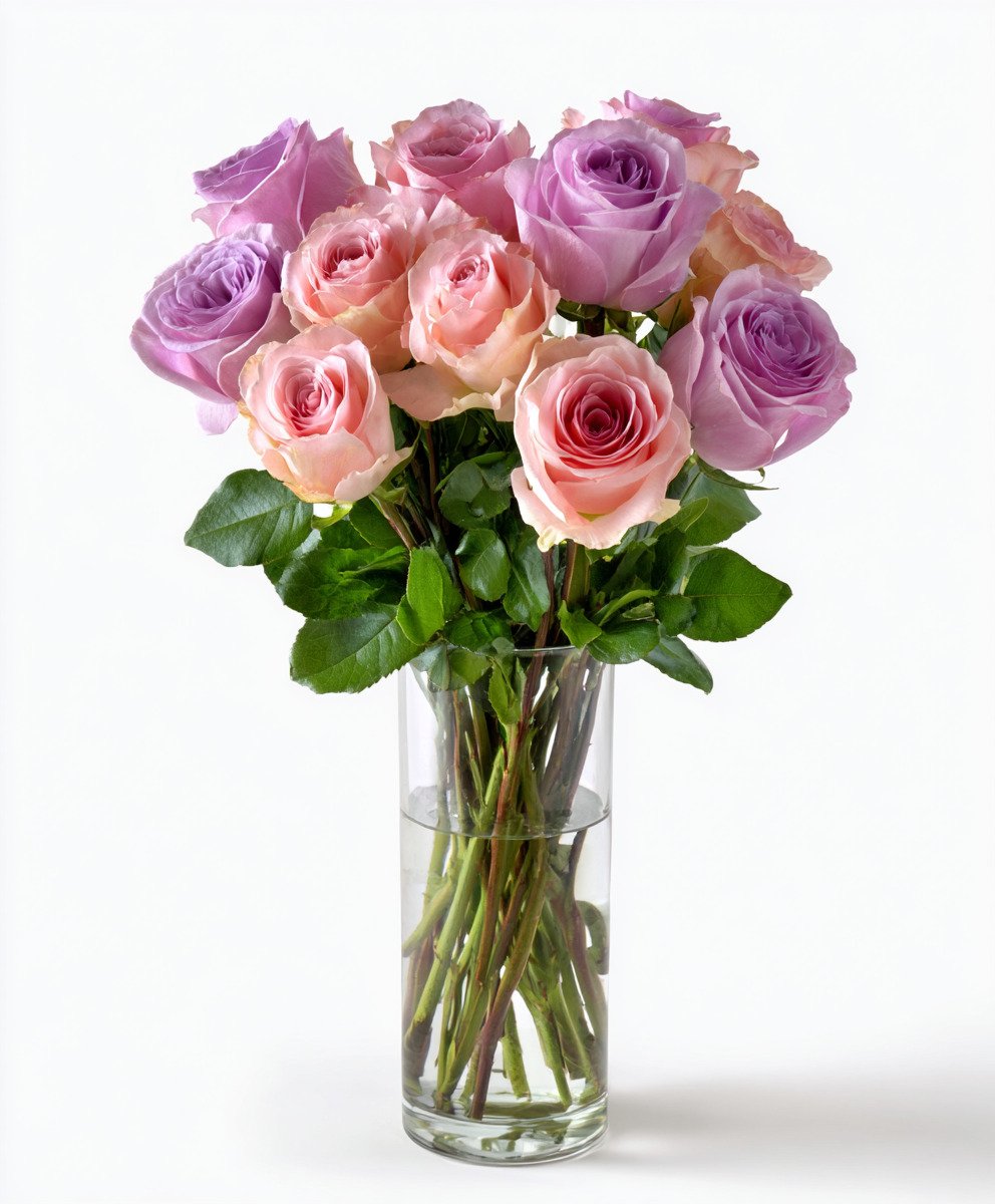 Whether it’s a birthday, anniversary, graduation, or just a thoughtful surprise, this bouquet of 12 pink and lavender roses fits any occasion effortlessly. Pink roses symbolize admiration and gratitude, while lavender roses signify enchantment and adoration, creating a harmonious balance of emotions conveyed through blooms. Let this bouquet speak the language of your heart without saying a word.