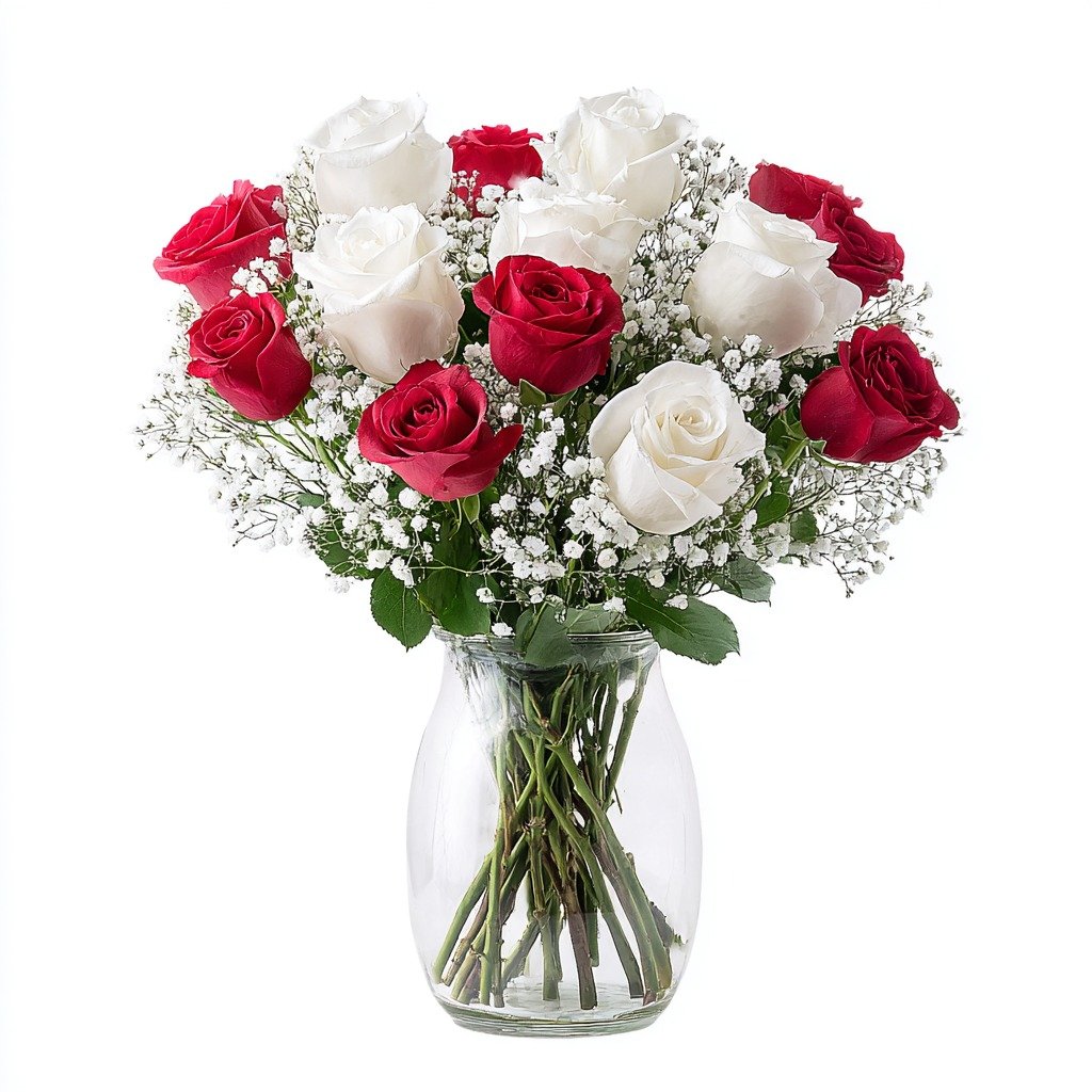Order your 12 Long Stem Roses (White and Red) today and let us help you express your feelings with elegance and grace. We offer convenient delivery options to ensure your gift arrives fresh and on time, making every moment special and every occasion memorable. Show your love with these beautifully crafted roses.