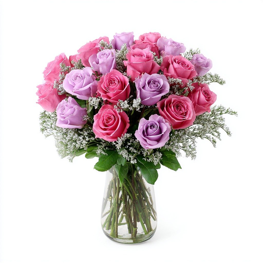 When you choose our 24 long stem hot pink and lavender roses, you’re selecting a product that combines beauty, quality, and thoughtfulness. Let this radiant arrangement add a burst of elegance and charm to someone’s day—or make it the centerpiece of your own celebration!