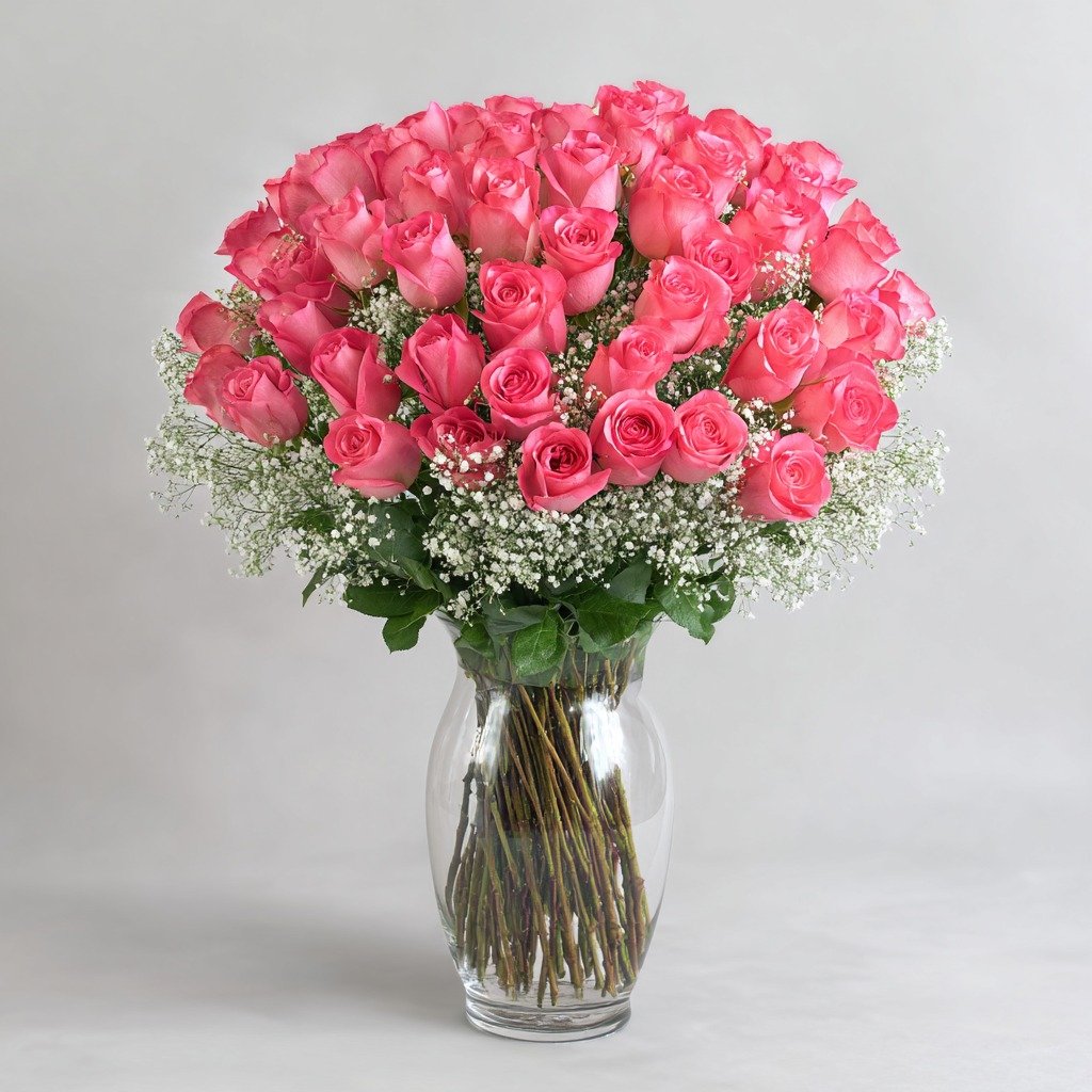 50 Long Stem Roses — an impressive and luxurious bouquet of 50 premium long-stem roses, symbolizing deep love, admiration, and celebration. Perfect for making a grand romantic gesture or marking a truly special occasion.