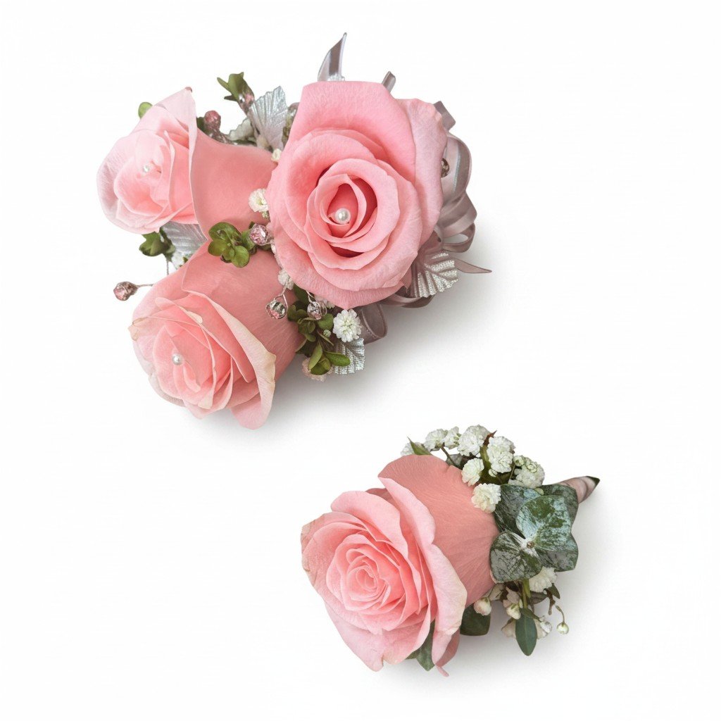 Crafted from carefully selected pink roses, this set showcases the utmost attention to detail. Each piece is thoughtfully arranged to complement weddings, proms, or any formal gatherings where sophistication is paramount.