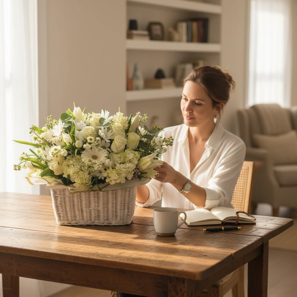 Each arrangement is thoughtfully crafted with the freshest white blooms, including roses, lilies, and hydrangeas, expertly arranged to create a timeless masterpiece. Our commitment to quality ensures that every petal radiates natural beauty and elegance.